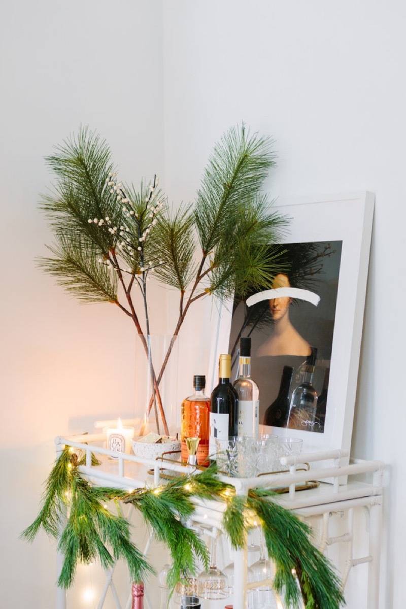 More and more bar carts are being used as a platform for holiday decor. And why not? They’re affordable, stylish, and they hold alcohol – talk about the holiday spirit(s)! Hone in on a color scheme or theme, and use objects of varying heights to style the top of your bar cart.