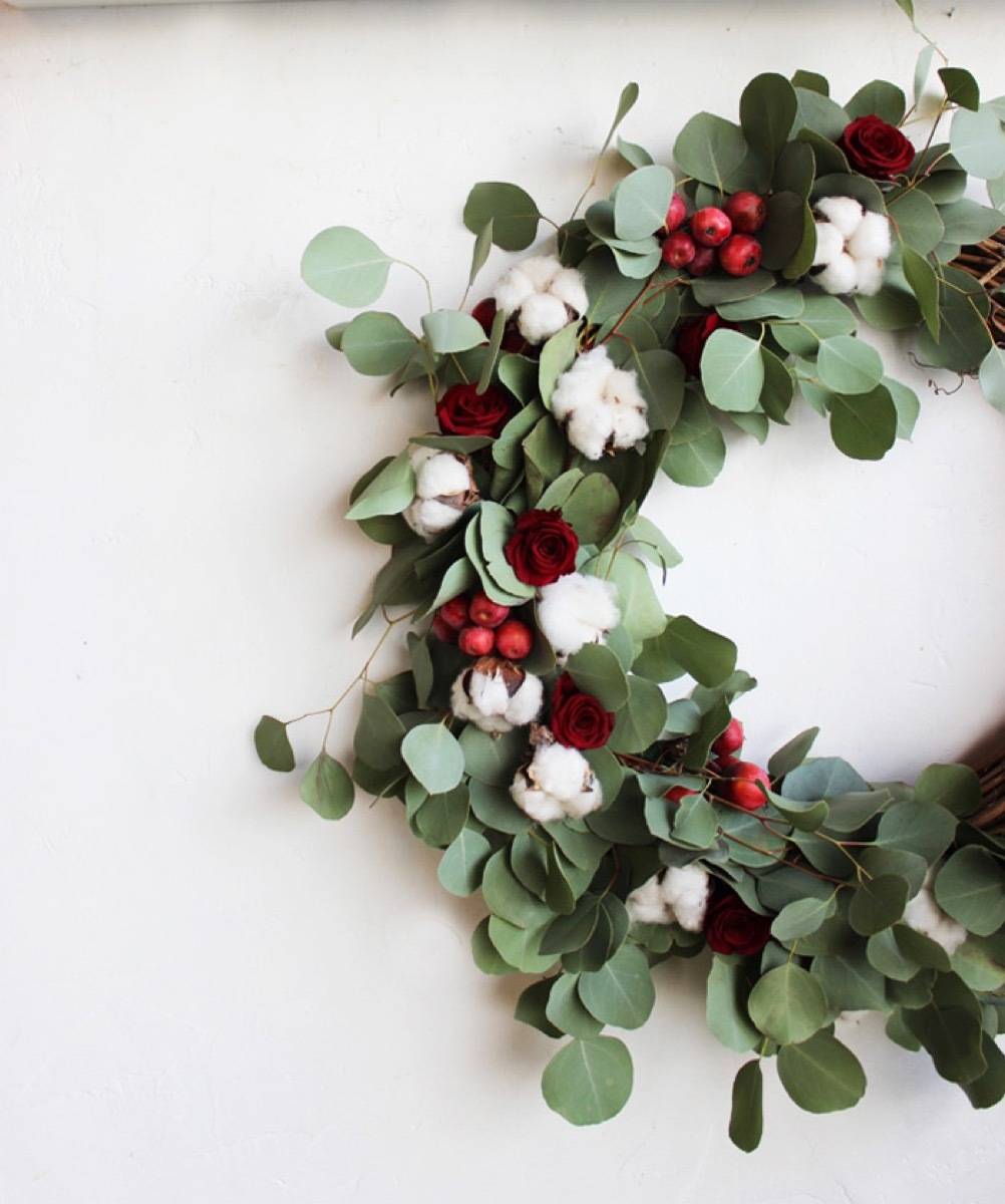Or go traditional with a handmade wreath (using a Command hook to hang, of course!).