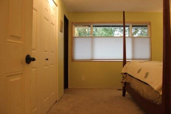 We also cut, painted, installed and touched up over 145 linear fit of trim. Adding what seemed to me like a small detail actually made a dramatic difference in the room feeling “finished.” Hanging art and bringing in details like a throw rug helped too! Chloe definitely approved. 🙂