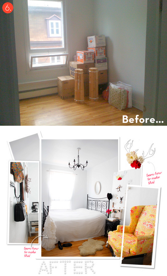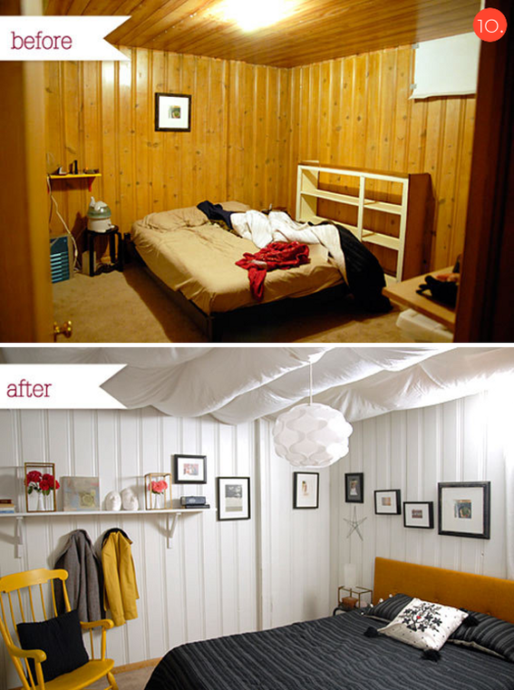 10. White paint and thrift store decor to the rescue! This dark basement bedroom got a much-needed makeover for cheap.