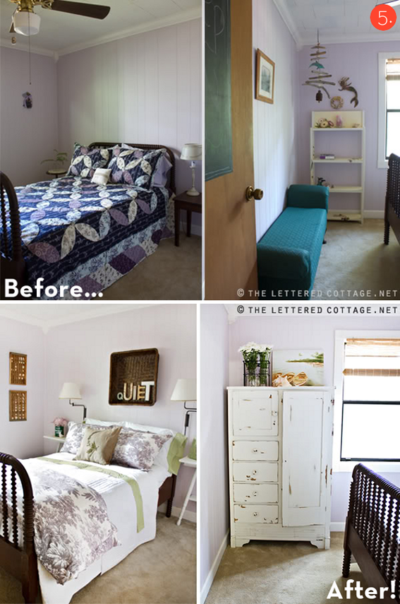 5. By updating the decor with some thrifty finds, this guest room got a fresh new look for cheap (and yes, the wall color stayed the same)!