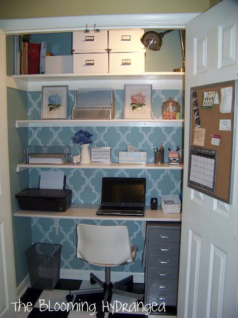 The before was obviously not doing its job, so why not give it a different job entirely? Like this DIY “cloffice” from Ange at the Blooming Hydrangea. See the full makeover at her site.