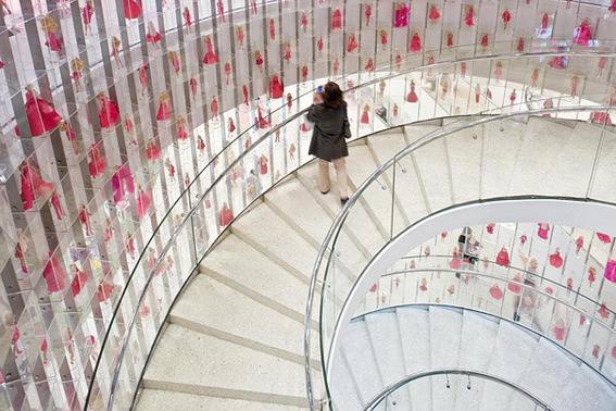 Here’s a stairwell that will keep all three of my little girls entranced! Designed by Slade Architecture, the Barbie store in Shanghai features 800 Barbie dolls in the same Barbie pink. (via thedot creative)