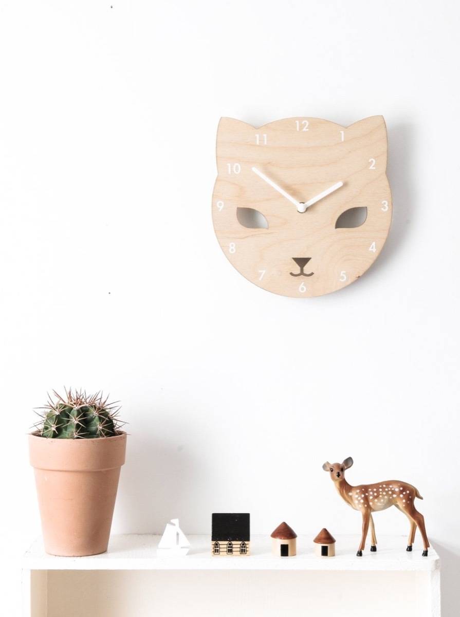 11. The sweetest kitty cat clock for a newborn’s nursery by Red Hand Gang: $33