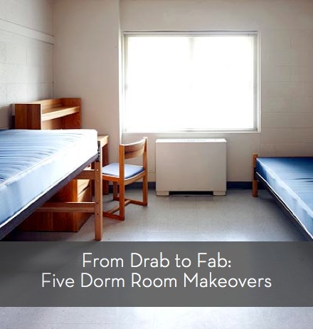 One thing a drab dorm room has going for it is it’s a blank palette, right? Take this ‘before’ for example: