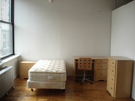 This dorm room belonged to two Boston Architectural College interior design grads. It had a lot going for it, like beautiful wood floors, high ceilings and a fireplace.