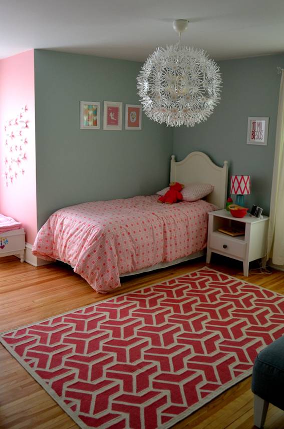 And now, let me refresh your memory on the planning that went into this room. Like many 4-year-olds, Ayla is color-crazy for pink. Yeah, this totally typical and cliche, but it’s who she is and what she loves. For the record, she also loves glitter and gems and leaves the house with some sort of sparkly accessory every day. She didn’t inherit this from me, because it’s a miracle when I make it into a pair of jeans before going out and I can’t figure out how to accessorize any part of my outfit.