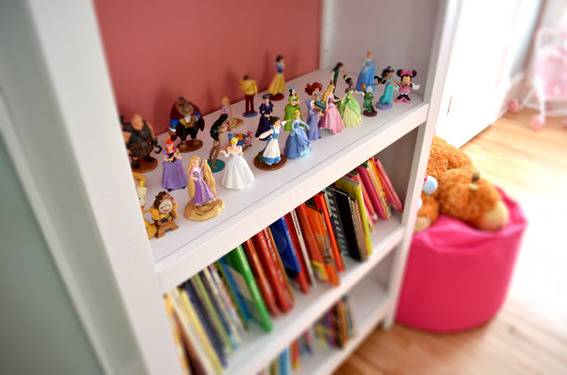 Here’s Ayla’s bookshelf/princess storage. No, I didn’t organize those; she did that.