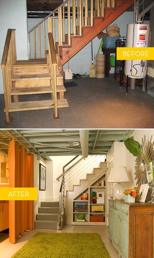 Lastly, how inspiring is this drab-to-dapper Better Homes & Gardens basement makeover! The gallery shows more of the livingroom, I just chose a pic that showcased how they clad the old stairs and created a welcoming landing area.