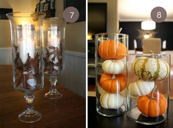 Create a fabulous fall dining table centerpiece with a mix of mini pumpkins, gourds, and candles. Add a burlap or velvet runner underneath for extra charm.