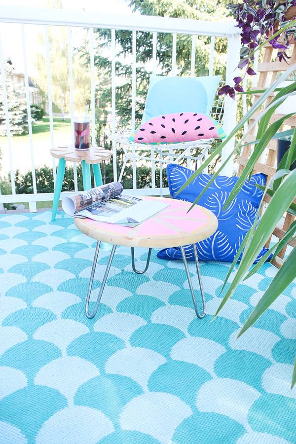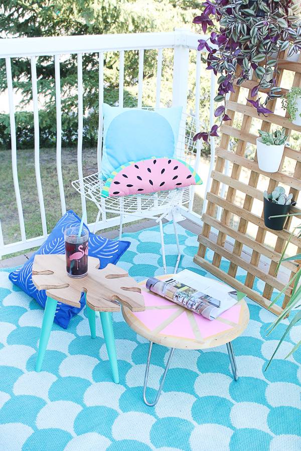 Summer is the perfect excuse to make bright and fun patterned pieces for the home and outdoor living – don’t you think? I love spending as much time outside on our patio as I can, but we are currently lacking in the furniture department right now. I decided to make a fun outdoor side table with a citrus top to add a splash of color and a whole lot of fun to our patio space!