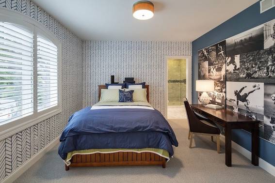8. Here is another room where the built-ins are the star and the sports decor blends. You could recreate this look by painting store bought bunk beds the same color as the wall and hanging a gallery wall of sports decor around the bunk bed.