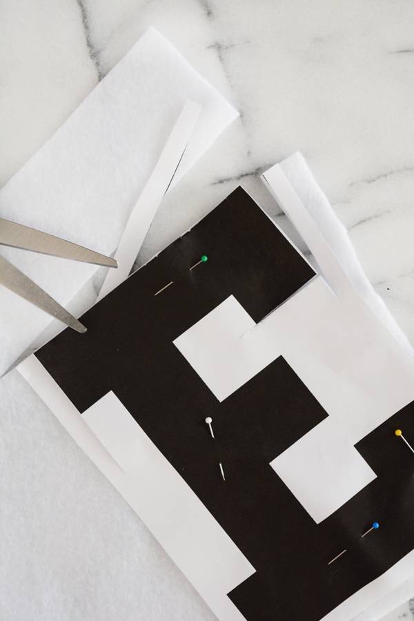 Pin the letters to the white felt in a few places. Cut out the letters with good sharp fabric scissors.