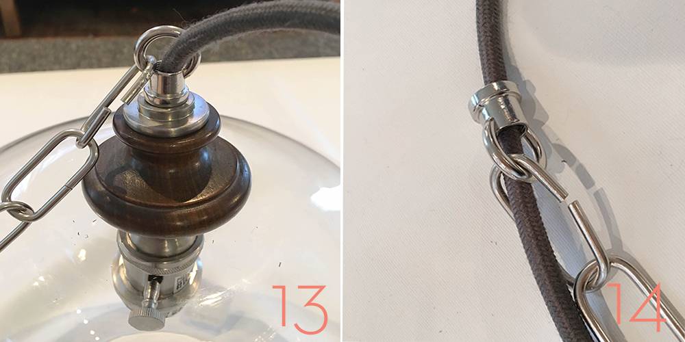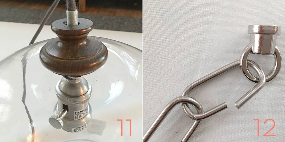 I also covered the bowl with some bubble wrap while I did this. Or, you could be extra careful and attach the chain to the loop before you screw it on the lamp pipe.
