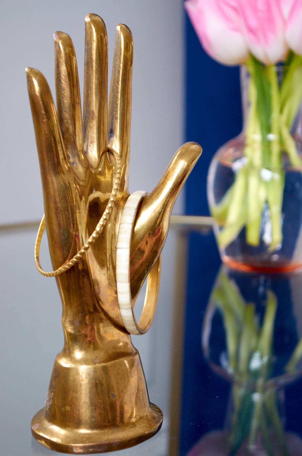 We styled this table with a glammy table lamp, books, a vase of tulips, and a vintage brass ring holder (which serves as the perfect catch-all for jewelry). Again, we tried to keep things simple and beautiful. Going to bed and awaking to a bouquet of flowers and a tidy table is good for your soul.