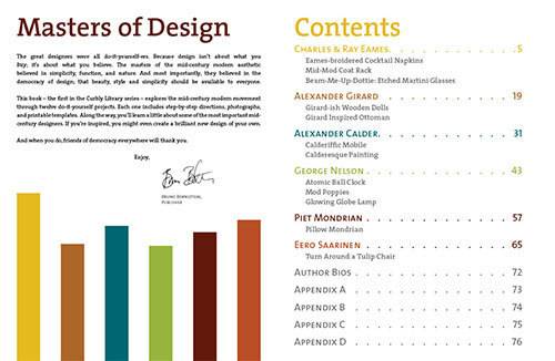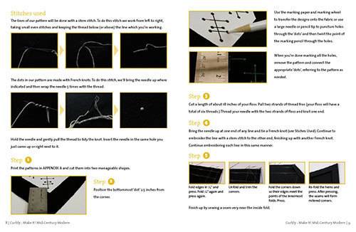 Each article includes background on the designer who inspired it, a materials and tools list, and detailed step-by-step instructions with high-res photos.