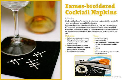 The book features twelve MCM-inspired how-to projects will show you how to make a Calderiffic Mobile, Eames-embroidered napkins, a fantastic Girard-ish ottoman and more!.