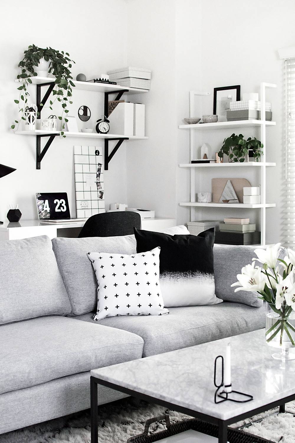 2. A workspace occupies part of this gorgeous black and white living room. [Photo: Kristofer Johnsson]