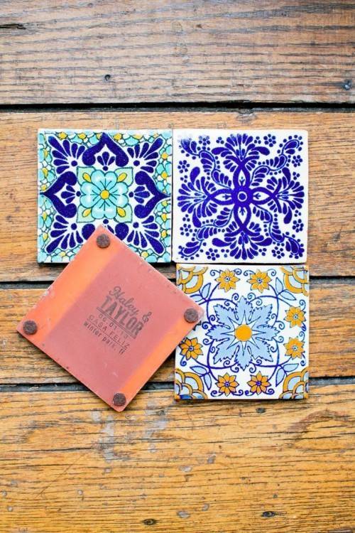 Make a gorgeous set of coasters for each guest using colorful tiles.