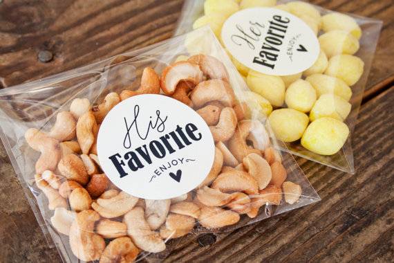 These nut-filled mason jars are individually customized—so cute! A few jars filled with candy are also available for those who don’t eat nuts because of allergies.