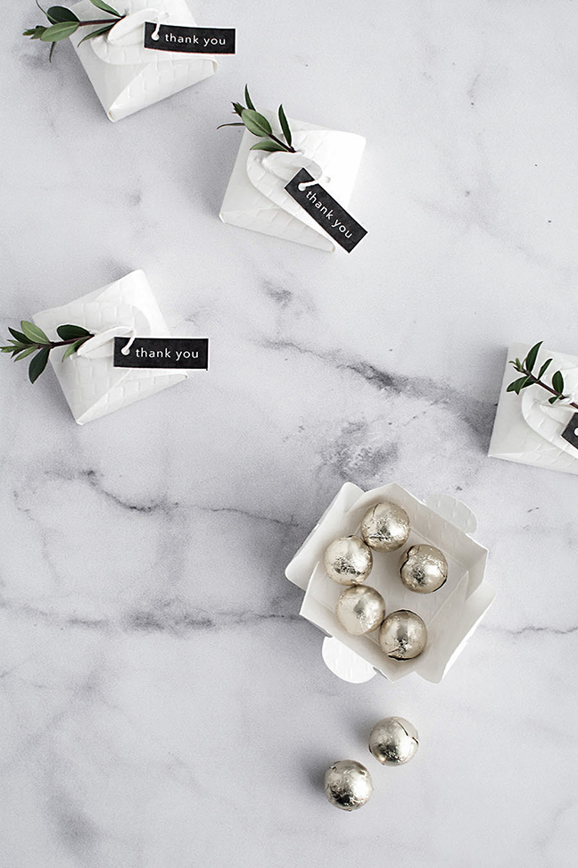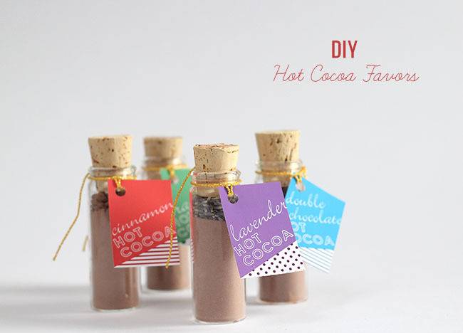 Similar to the spice mix, these creative hot cocoa mixes give guests something sweet for later. Head over to Green Wedding Shoes to learn more.