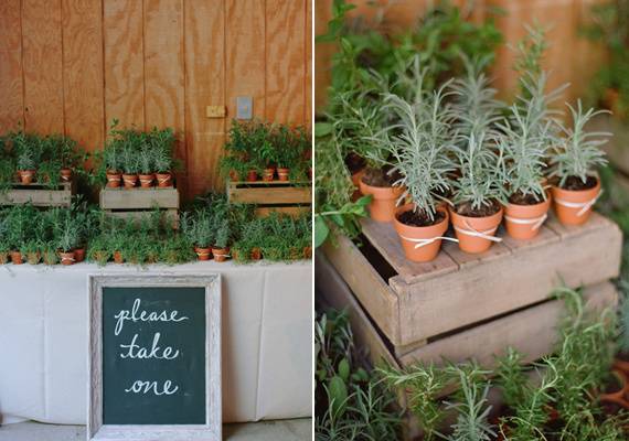 Potted herbs are a fun idea and a gift that can keep giving. Guests can pick their favorite herb, and it will remind them of your wedding every time they grab a sprig to cook with.