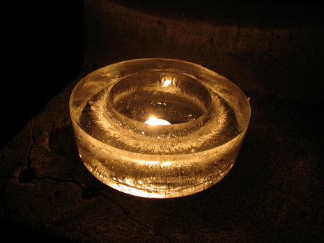9. Add lighted tea-light or votive to center of donut
