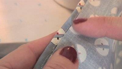 piercing the fold of the fabric. Put the needle in the fabric, drop