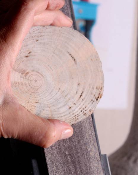 1. Carefully slice up 5 or 6 pieces of a tree limb about 3/8″ thick