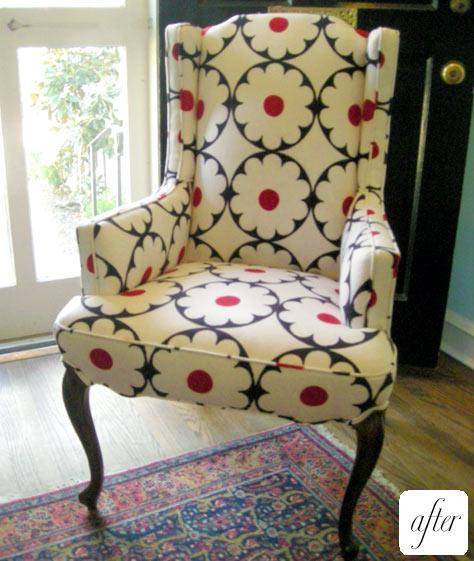 Those wings can have you pounding your head against the wall. Here’s a very thorough step by step wingback reupholstery tutorial you can use to ease the frustration. And c’mon, look at the AFTER. Who wouldn’t love this?