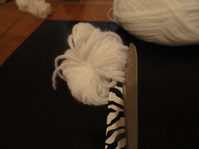 After you have tied you knot, cut all the loops from your ball and fluff.