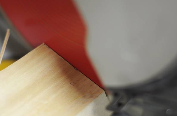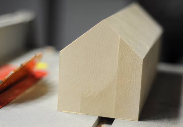 2. Then, I trace the house profile onto the face of the wood, first finding the center, and using a 53° angle on the roof.