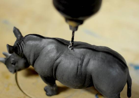 2. Begin by drilling a hole that’s a bit small than your screw eyelet into the back of your creature. (Or the head, or whatever makes sense. That sounds more violent than it is.) Try to drill in the center of piece’s weight, as opposed to it’s length, so that the creature will hang evenly.