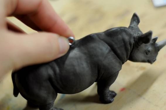 3. Use your fingers to screw in the eyelet, turning the animal onto the threads.