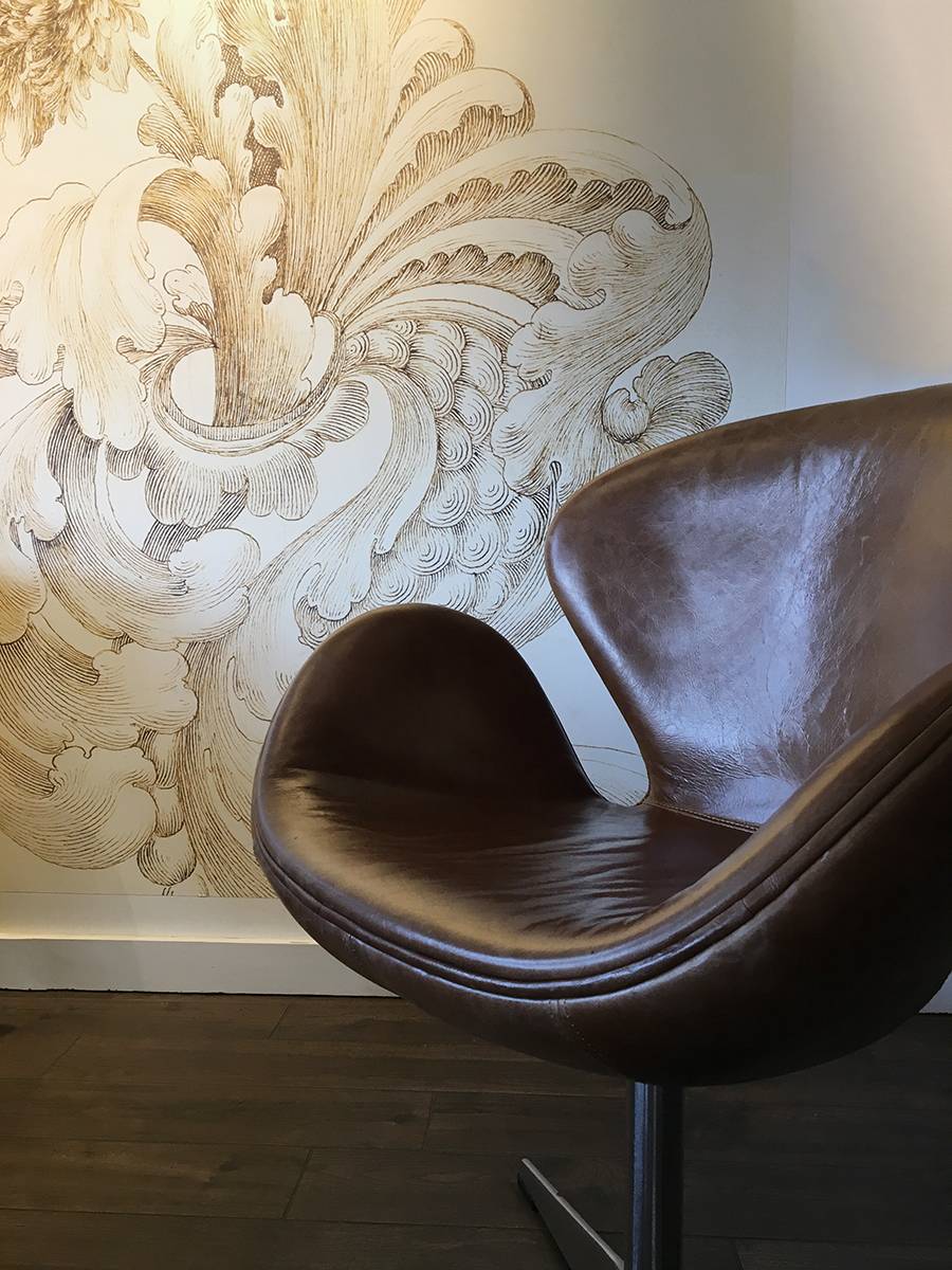 3. Consider the shapes in the room. The chair and wallpaper at PK Coffee in Stowe, Vermont both have a wonderfully rounded feel to them, giving them a very cohesive feel. This idea translates easily to home decor as well… if you have a modern room with angular lines, you may want to stick to that theme throughout instead of adding in a round coffee table or a paisley rug.