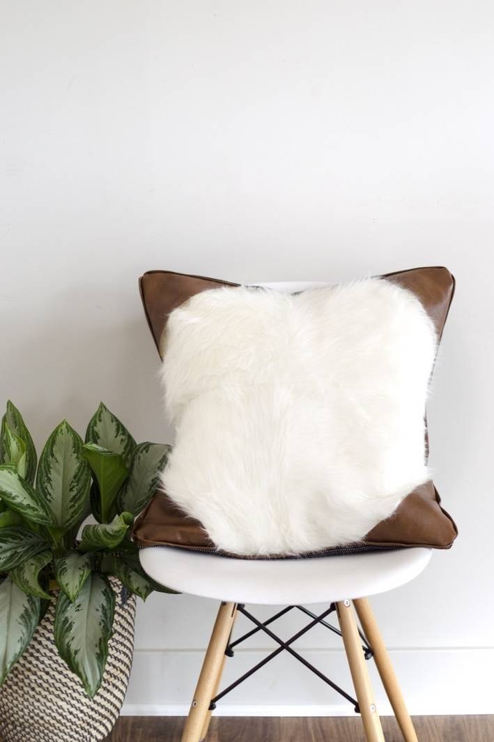 2. Don’t have room for a whole pouf? This faux leather and faux fur pillow gets you a similar look, but you can toss it on your couch. Get the how-to here.