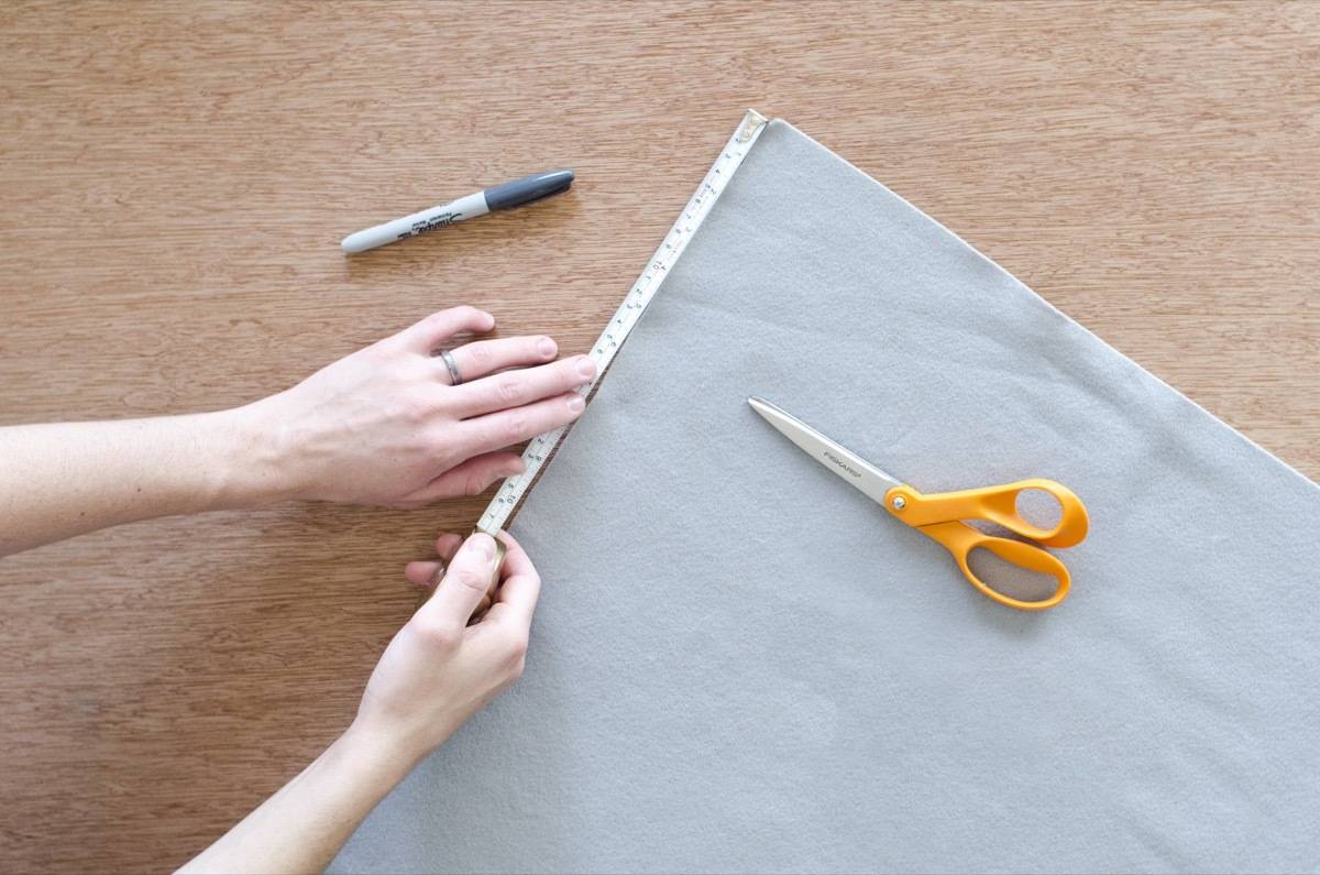 Begin by cutting a square piece of felt, measuring 18 inches in length and 18 inches in width. This square will be the bottom of the ottoman.