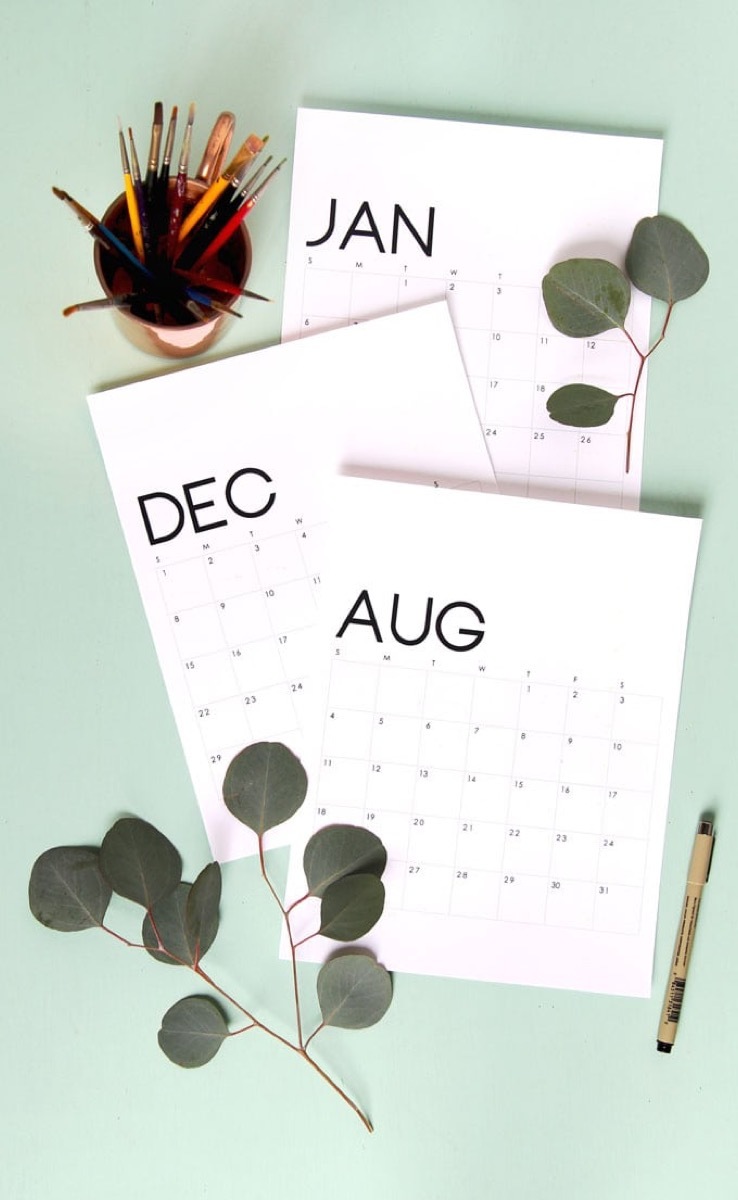 8. These beautiful monogram calendars are the definition of simple perfection. Download and print it here.