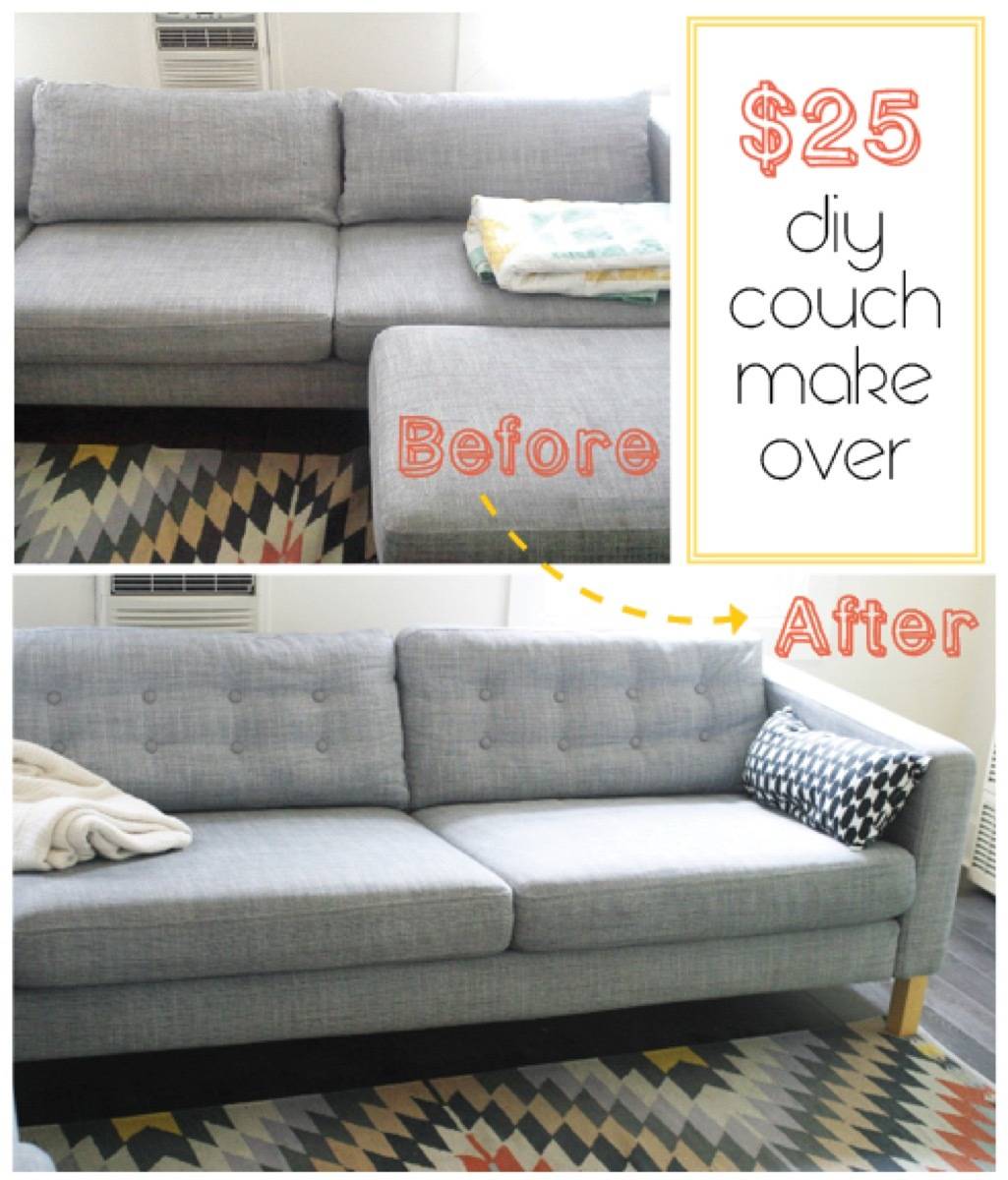 If recovering an entire couch is just too large of a commitment, Jupe du Jour shows us how to quickly update drab cushions by adding some buttons.