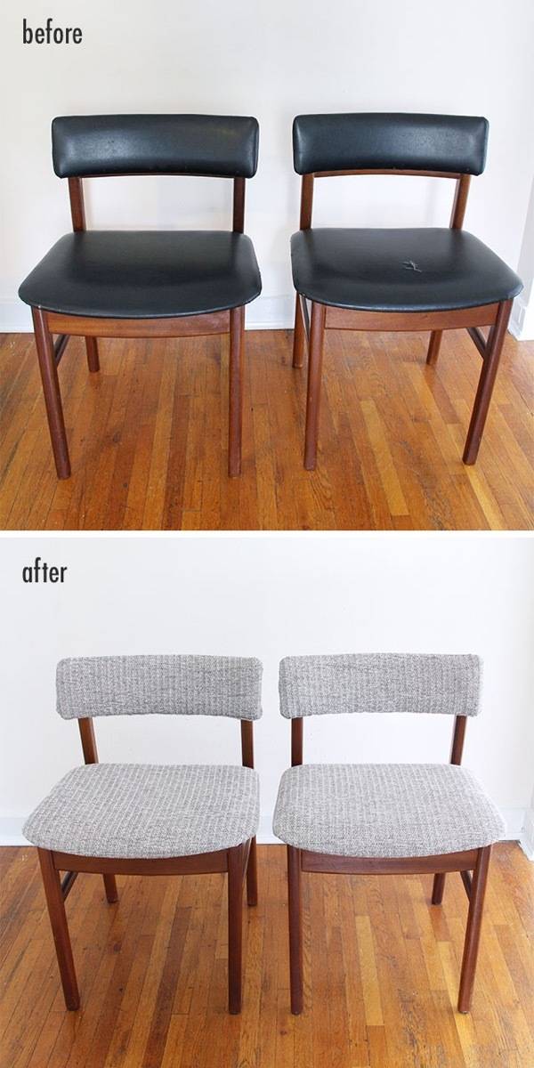 This “before” chair (via Apartment Therapy) had seen its fair share of kitty-cat scratching. The “after” is a totally new seat!