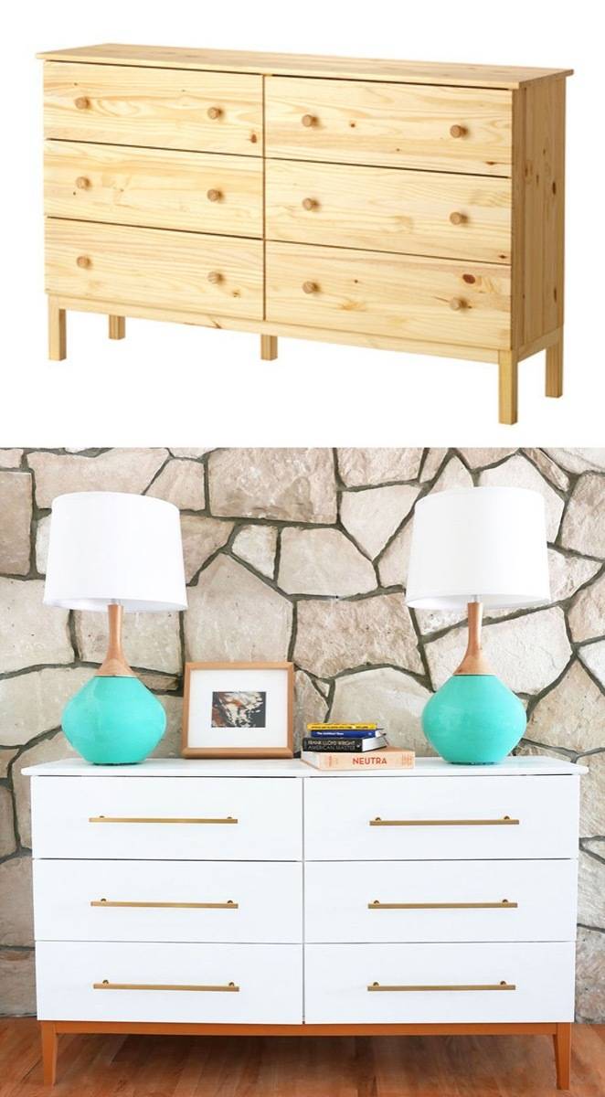A Vintage Splendor thinks outside the box by changing not only the hardware, but also the legs of this IKEA dresser.