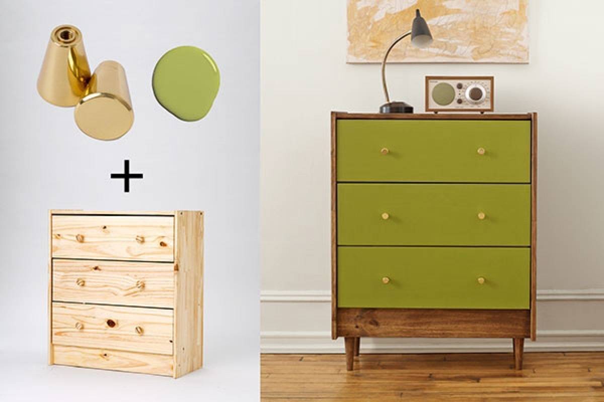 We close out our list of furniture makeovers with one from This Old House. Olive green and wood tone compliment each other with shiny new knobs.