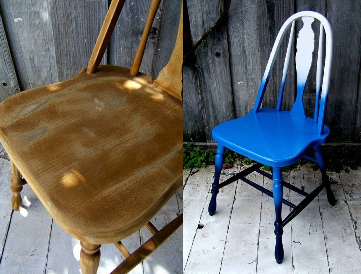 Design Sponge takes a boring wooden dining chair and turns it trendy with this ombré painting effect.