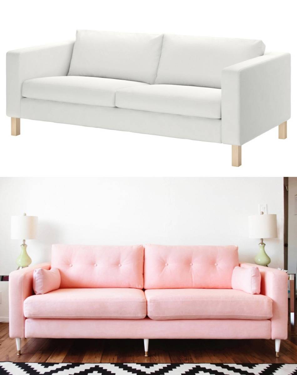 Let’s start this list of furniture makeovers strong with a millennial pink makeover from My Melodrama. This look was achieved by dyeing a slipcover.