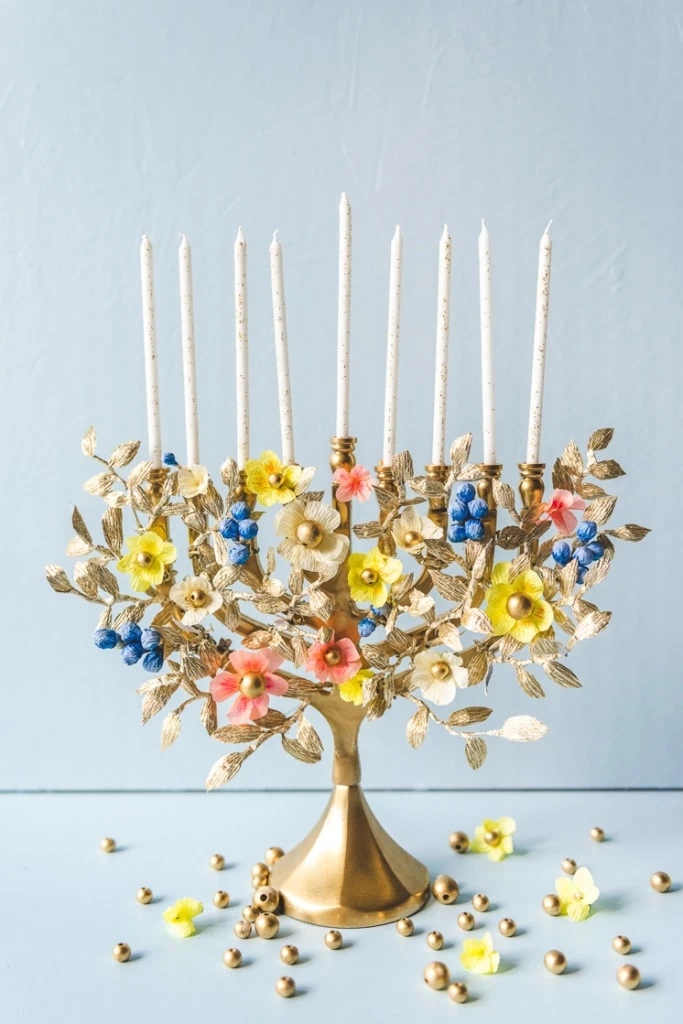 Learn how to make this show stopping DIY paper flower menorah from The House That Lars Built.