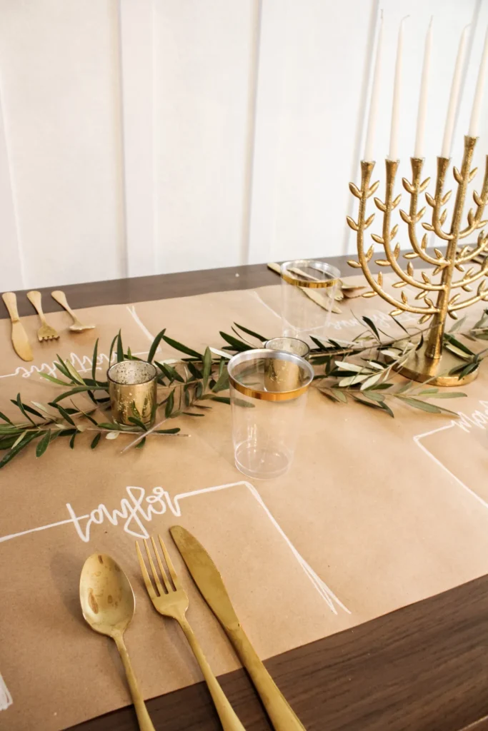 Beautiful Hanukkah tablescape with thoughtful details from rebekahlowin.com. You’ll find lots of incredible ideas for celebrating Hanukkah on her site, from recipes to DIY decor.