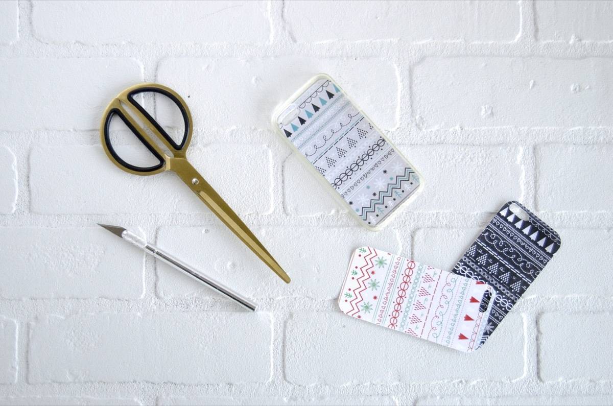 Start by printing out the template that corresponds with the size of your phone (I recommend printing on cardstock if you can). Cut out the designs, then use a craft knife to cut the opening for the rear-facing camera. Pop the design into a clear smartphone case, and you’re ready to ho-ho-go!