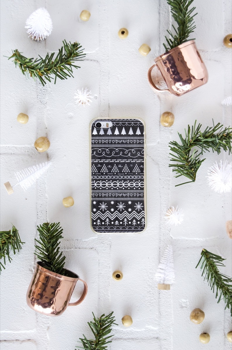 When it comes to the holiday season, I like to start small. I’ll start by introducing Christmas socks into my wardrobe, playing Sufjan Stevens’ holiday records on Pandora, and I usually change the wallpaper on my smartphone. This year, I’m sharing a festive design in a few color schemes, depending on your holiday preference! You can download them as a wallpaper for your phone or desktop, or, keep reading to find out how to print and use as a festive iPhone case.