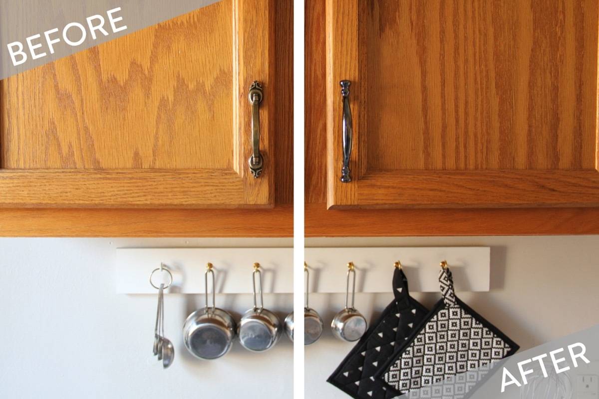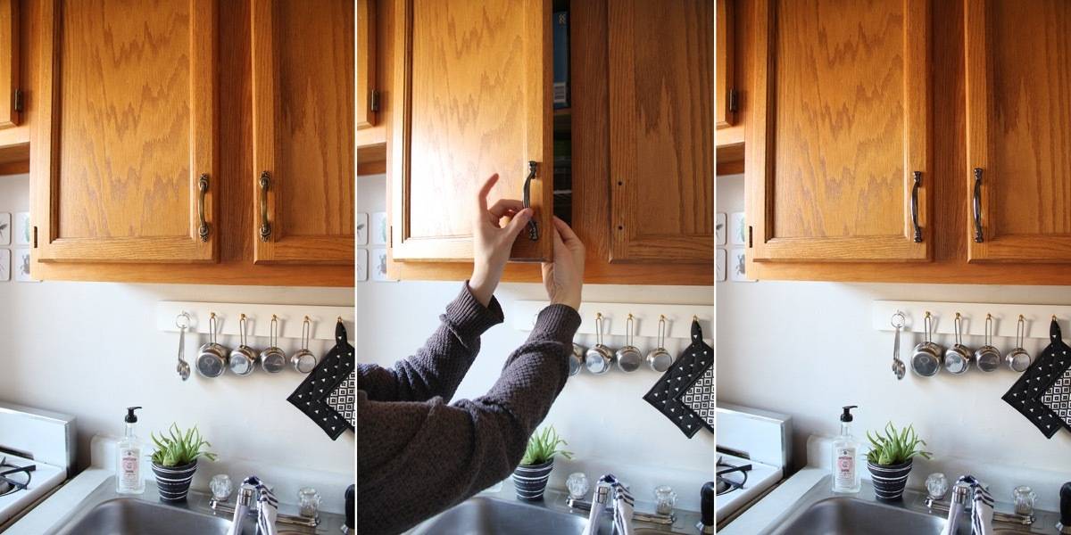 If your cabinetry has two-hole pulls like the ones seen above, measure the distance between the holes before heading to the hardware store to purchase new handles. When switching out your cabinet’s hardware, make sure to keep the original handles and their accompanying screws. Store all the pieces together in a clearly labeled sandwich bag until you move out.