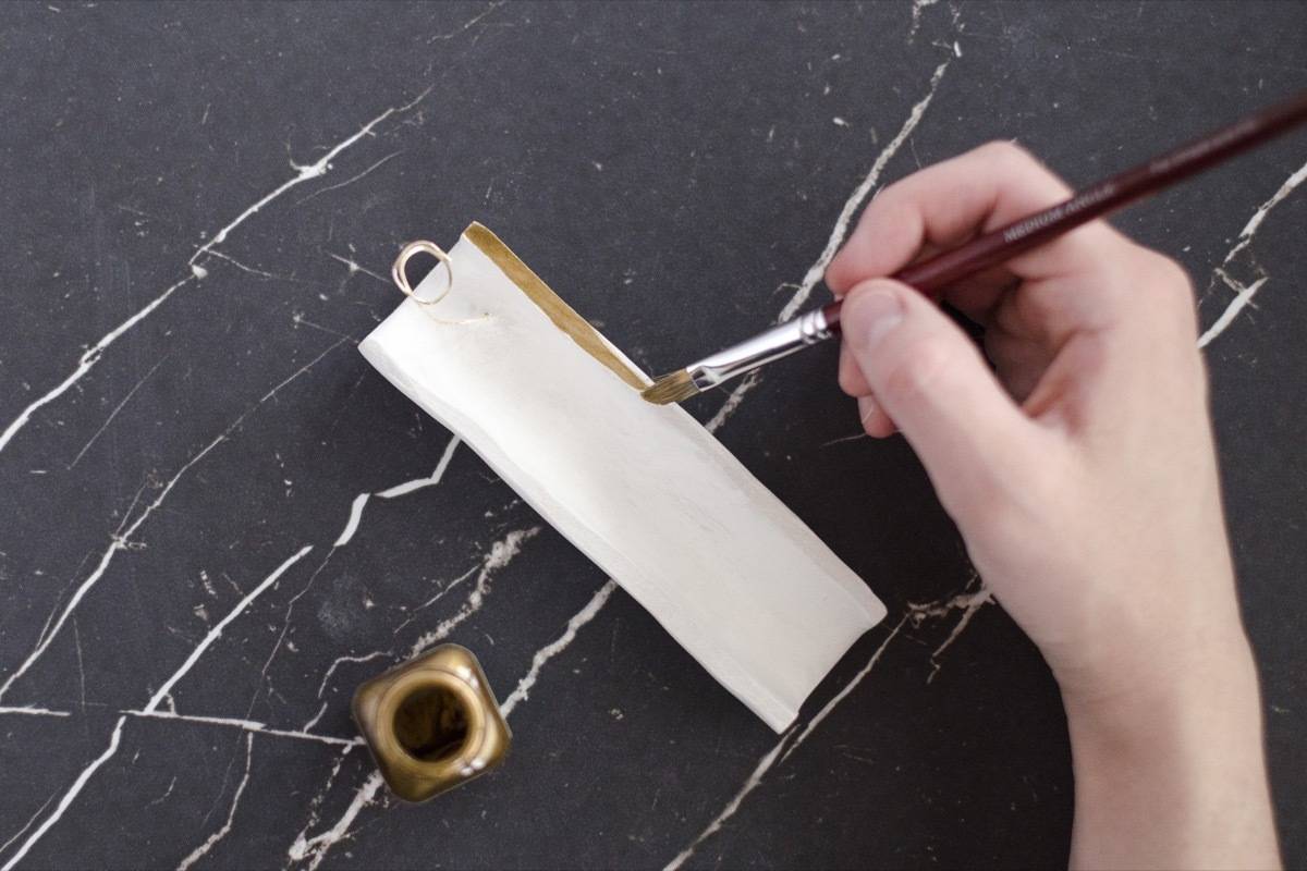 Use a bit of gold paint to decorate the edges of the palo santo holder. Let the paint dry completely, and your palo santo holder is ready!
